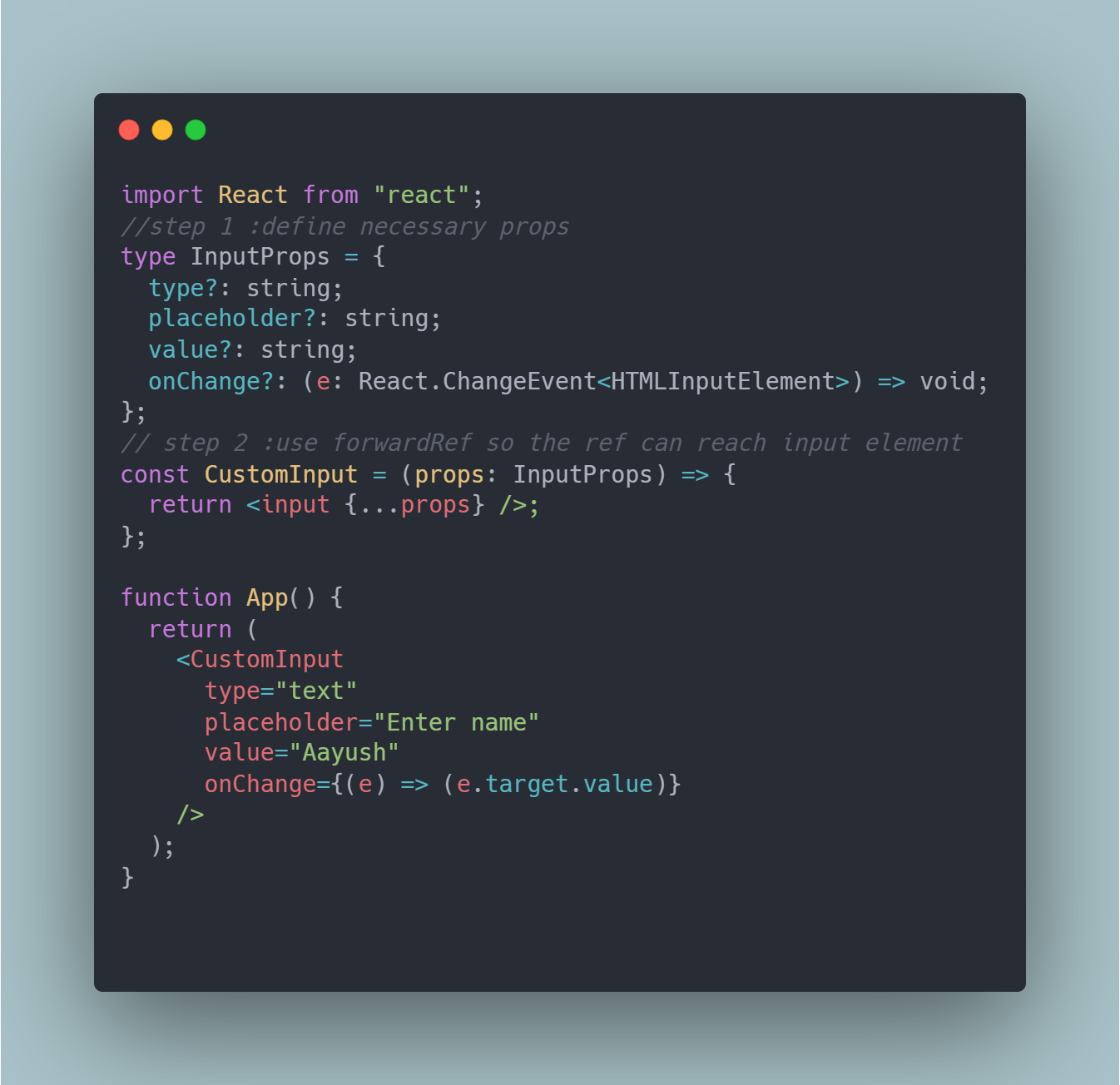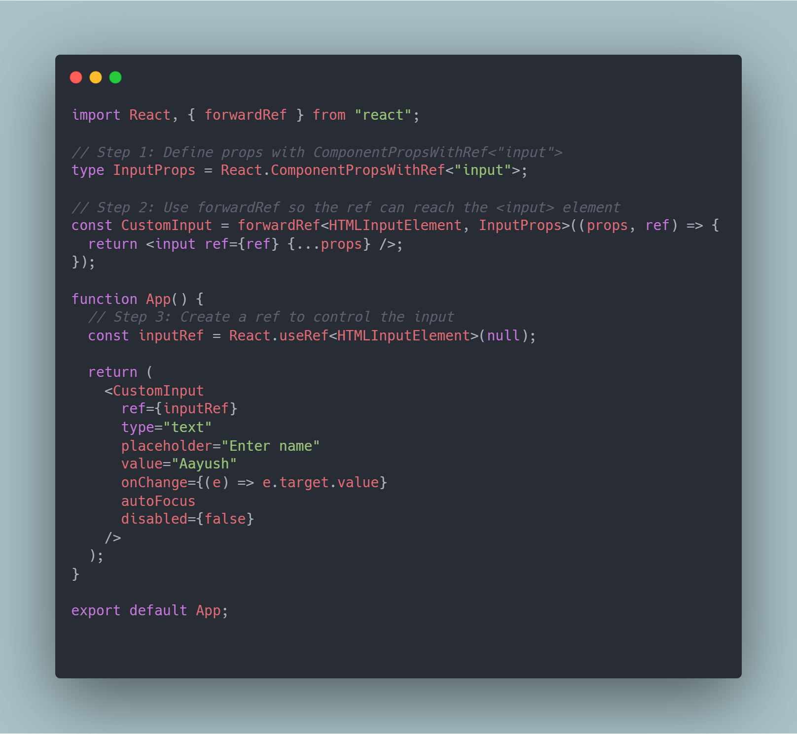 Lets have a look at an example without using ComponentPropsWithRef<Type>
