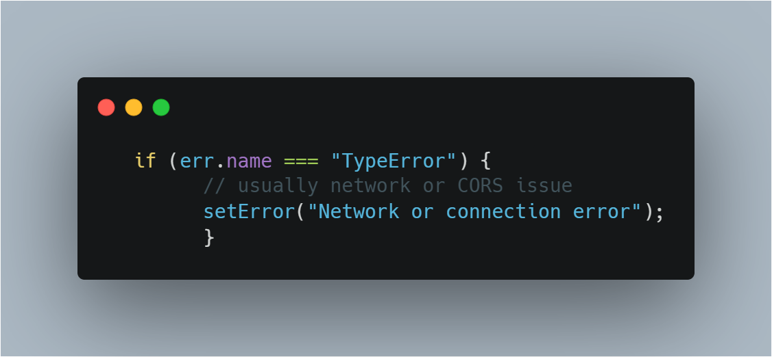 ii. That’s why we manually check res.ok and throw a custom ApiError.