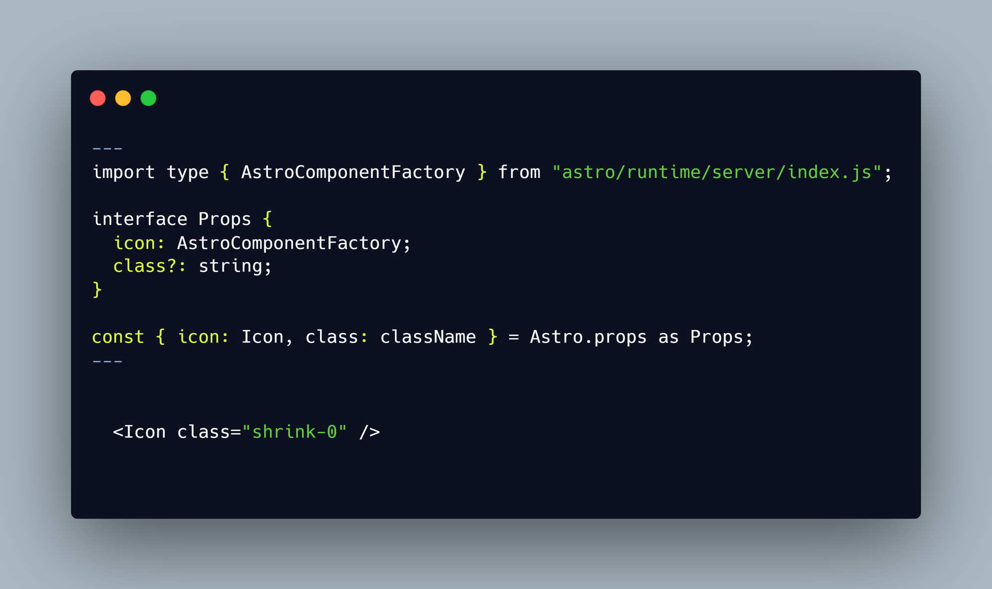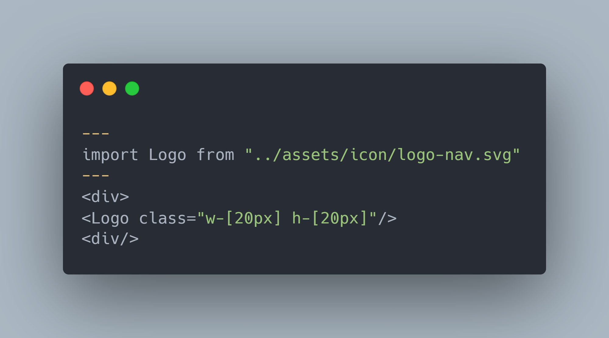 So, this is how we can do it in Astro—it's really simple. In .astro files, we can also pass SVGs as props, although the typing is a little different. Code given below : -