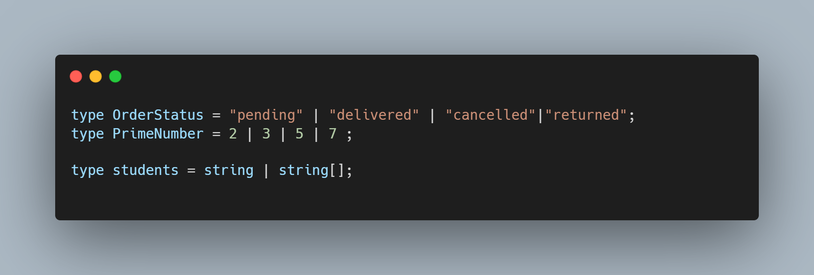 type CustomerType: Declares a new typeconst customer: CustomerType: Creates a constant variablecustomerthat must follow theCustomerTypetype