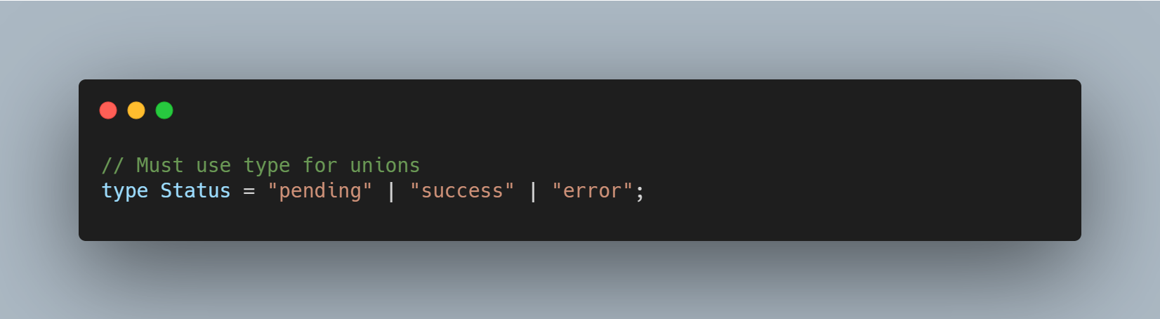 typeandinterfaceare WAYS TO DEFINE types- Union is a FEATURE OF types