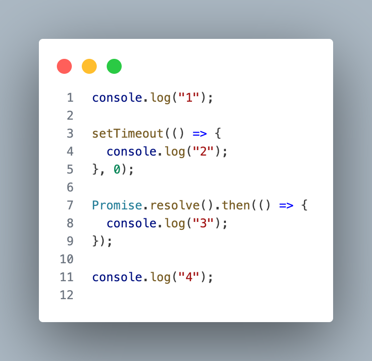 3. Promise ← Microtask ran before Macrotask!